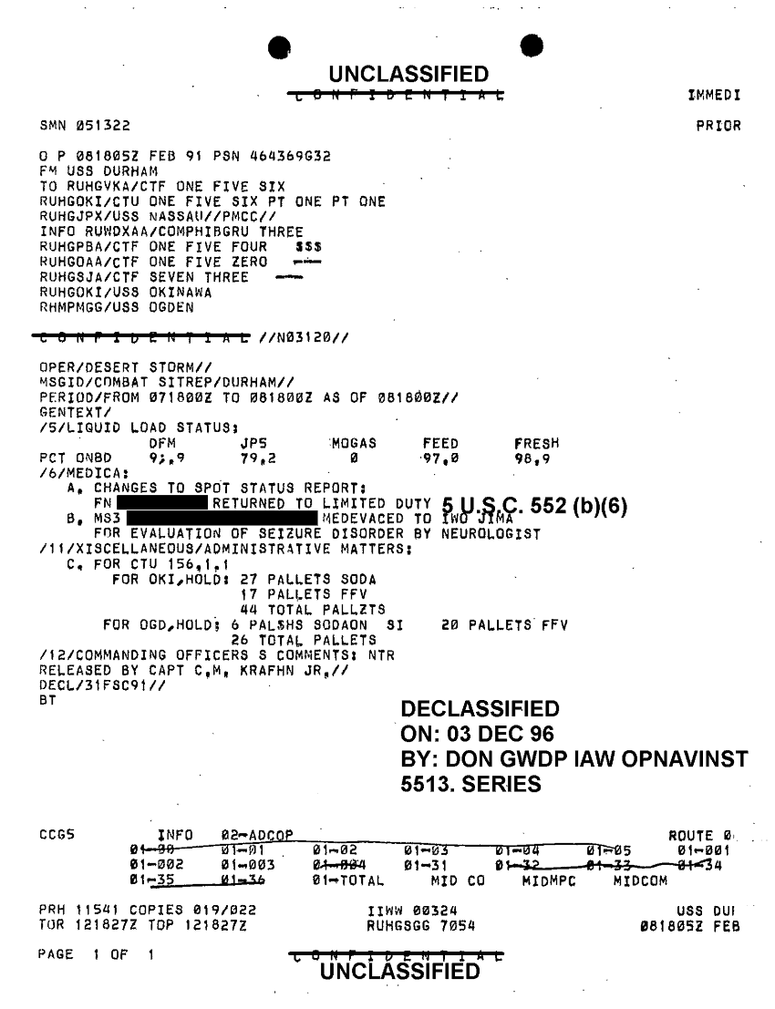 Document 1 f:/Week-40/BX300068/FOLDER 11 MESSAGE FILES 5 - 13 FEB 91 CNA 2738 1OF2/combat sitrep uss durham 08 feb 91:12179609580518
