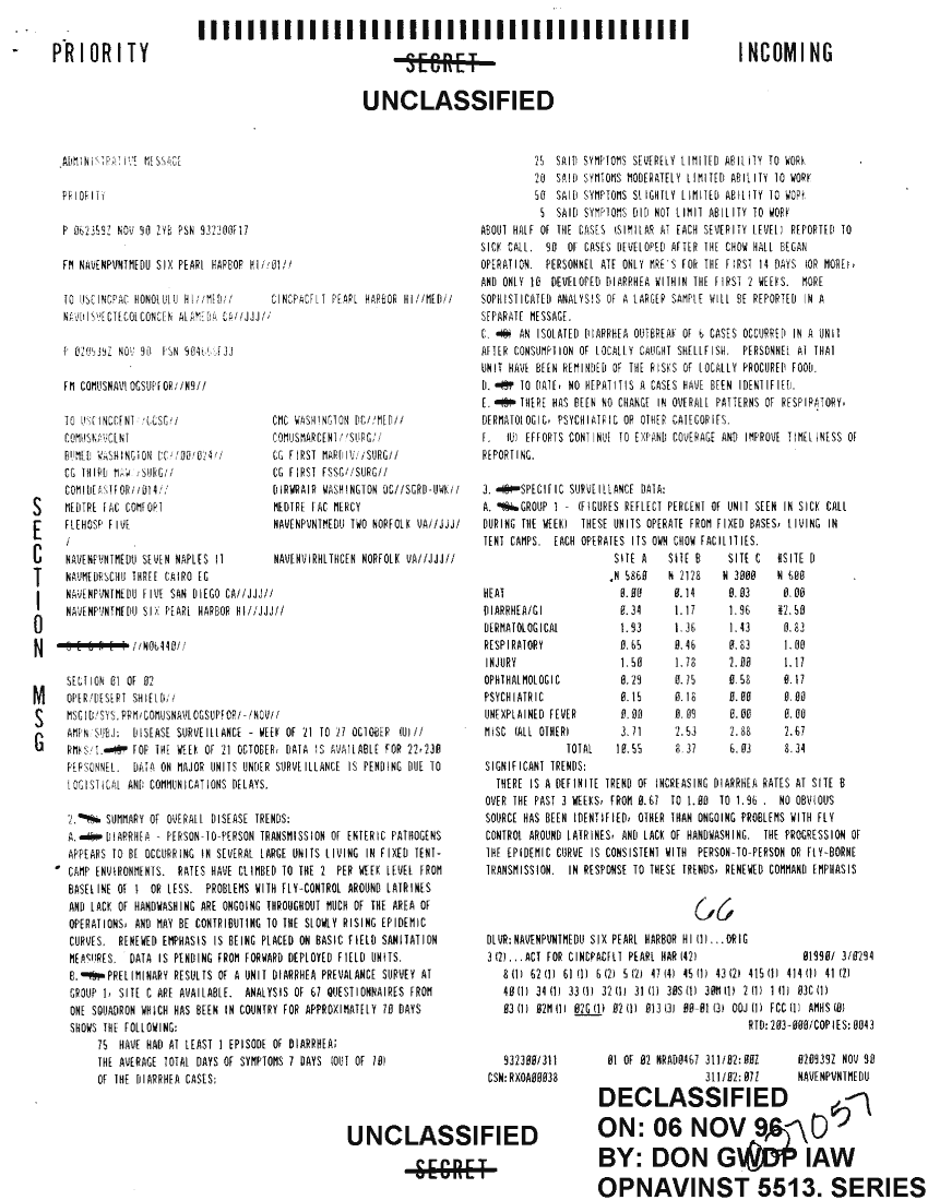 Document 4 f:/Week-41/BX300104/COMUSNAVLOGSUPFOR NAVY MEDICAL MESSAGE FILES 1990-1991 CNA 2910/disease surveillance wk 21 to 27 oct 90:0102970948543