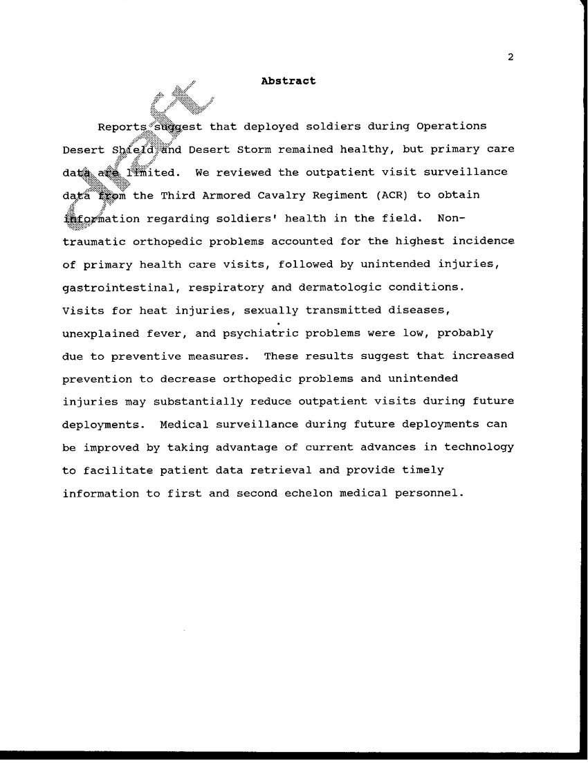 Document 26 f:/Week-36/BX003204/SURVEY OF OUTPATIENT VISITS DURING OPERATION DESERT SHIELD/a survey of outpatient visits in a us army forwa:100196133421