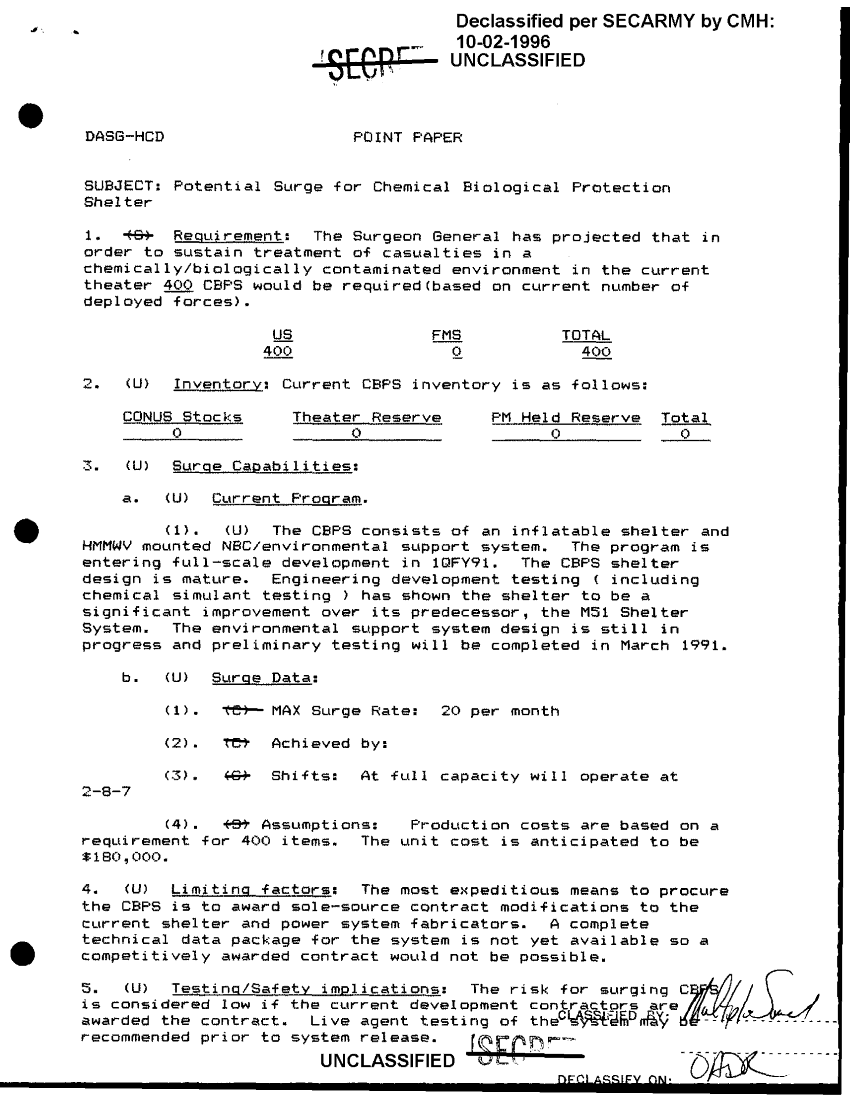 Subject = POTENTIAL SURGE FOR CHEMICAL BIOLOGICAL PROTECTI