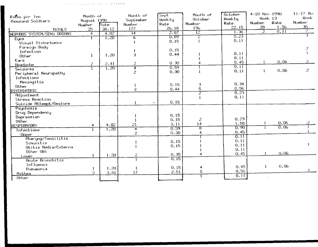 Document 22 f:/Week-36/BX003204/OPERATION DESERT SHIELD DESERT STORM MEDICAL DATA/morbidity surveillance:100196133415