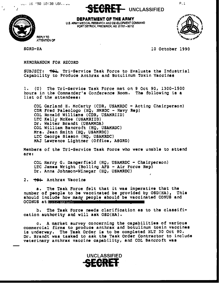 Document 7 f:/Week-36/BX003202/SECOND TRI-SERVICE TASK FORCE MEETING TO EVALUATE THE INDUSTRIAL CAPABILITY TO PRODUCE ANTHRAX/second tri service task force meeting to evaluat:1025961306303