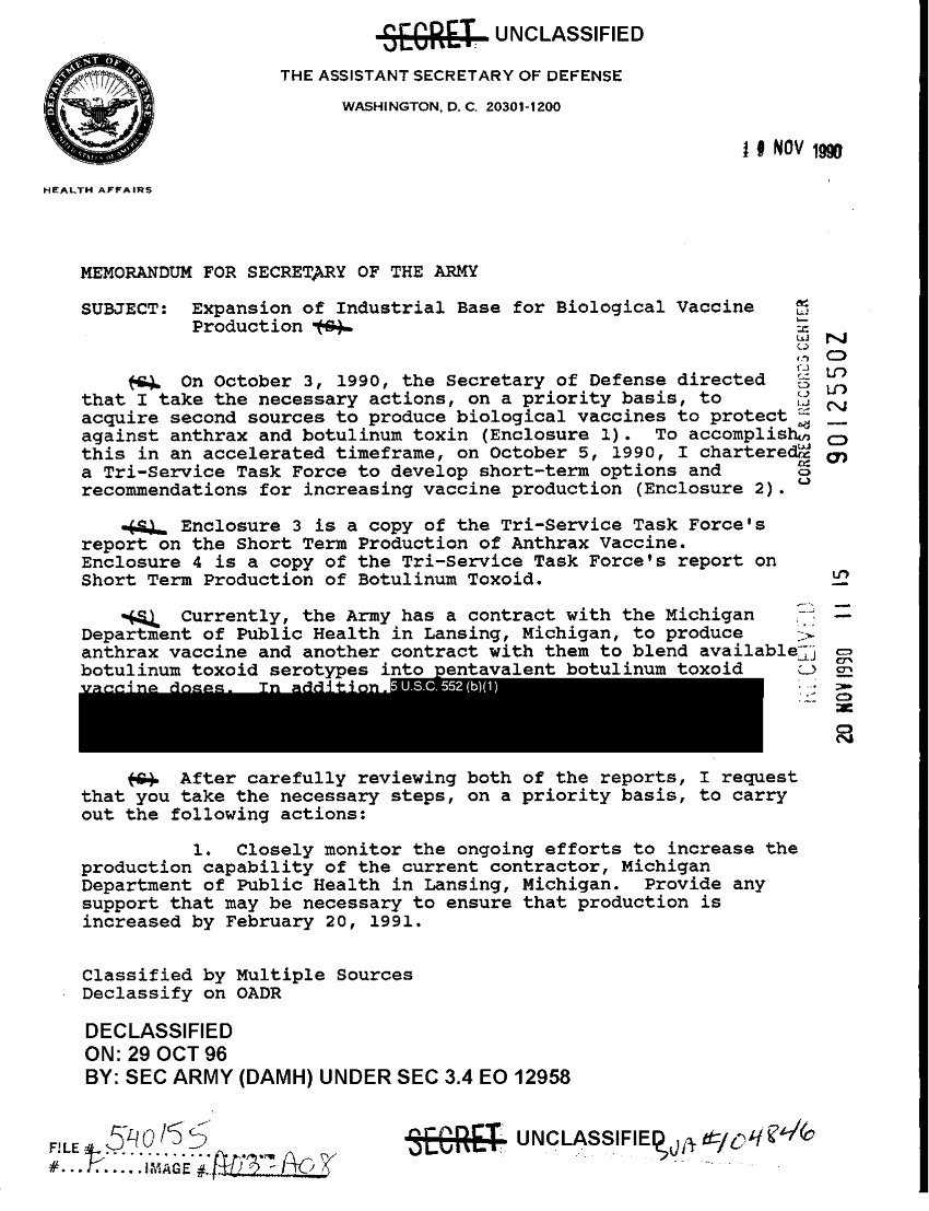 Subject = EXPANSION OF IDUSTRIAL BASE FOR BIOLOGICAL VACCI