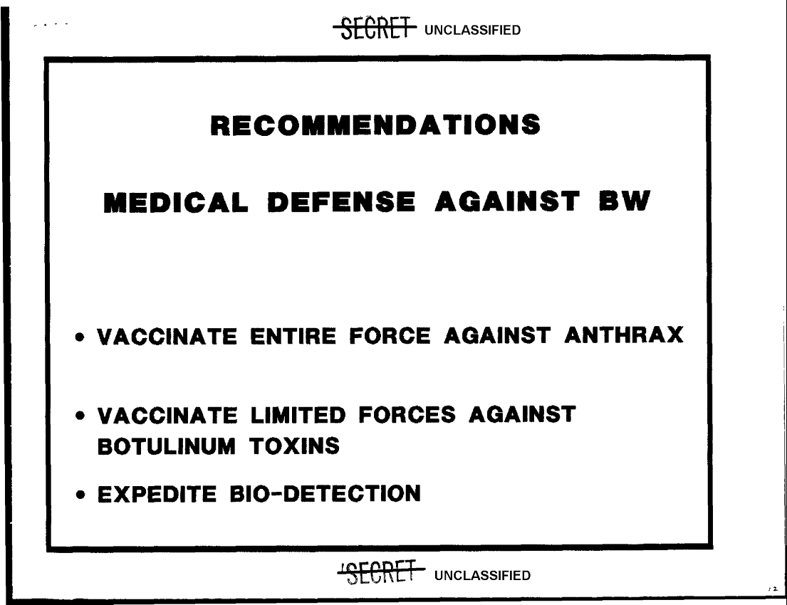 Document 13 f:/Week-36/BX003204/OTSG BW BRIEF TO CSA 31 AUGUST 1990/medical defense against biological warfare agent:1122961634186