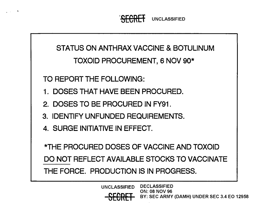 Subject = STATUS ON ANTHRAX VACCINE AND BOTULINUM TOXOID P