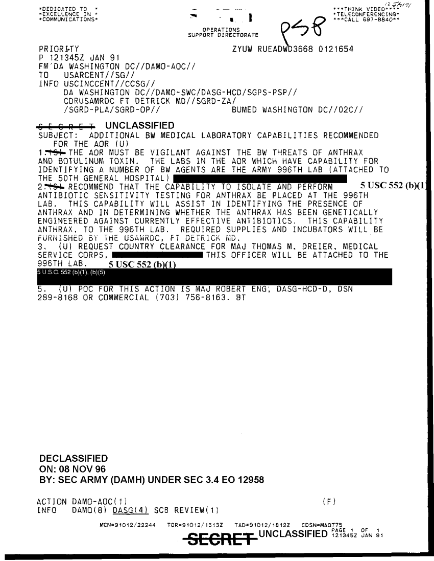 Subject = ADDITIONAL BW MEDICAL LABORATORY CAPABILITIES RE