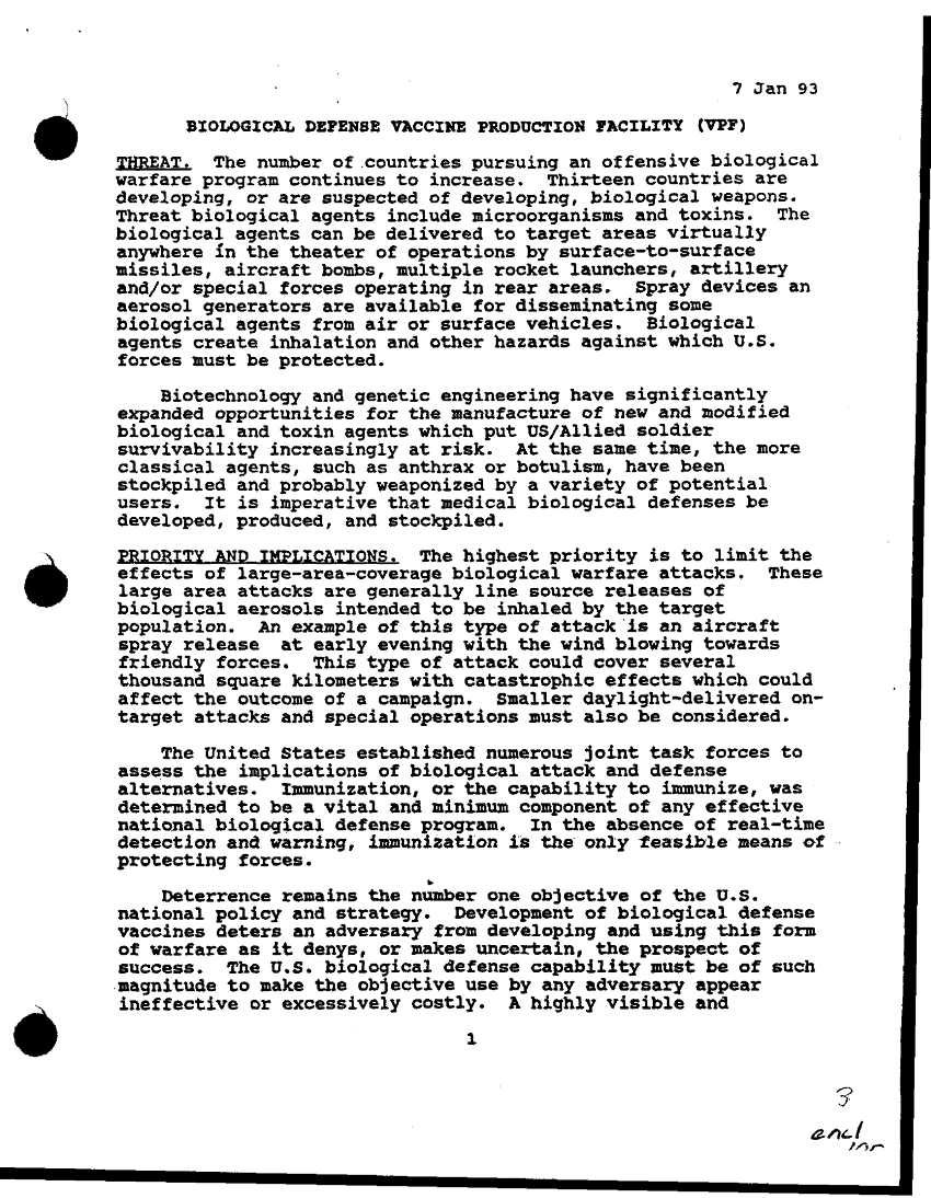 Folder Title = BIOLOGICAL DEFENSE VACCINE PRODUCTION FACILITY