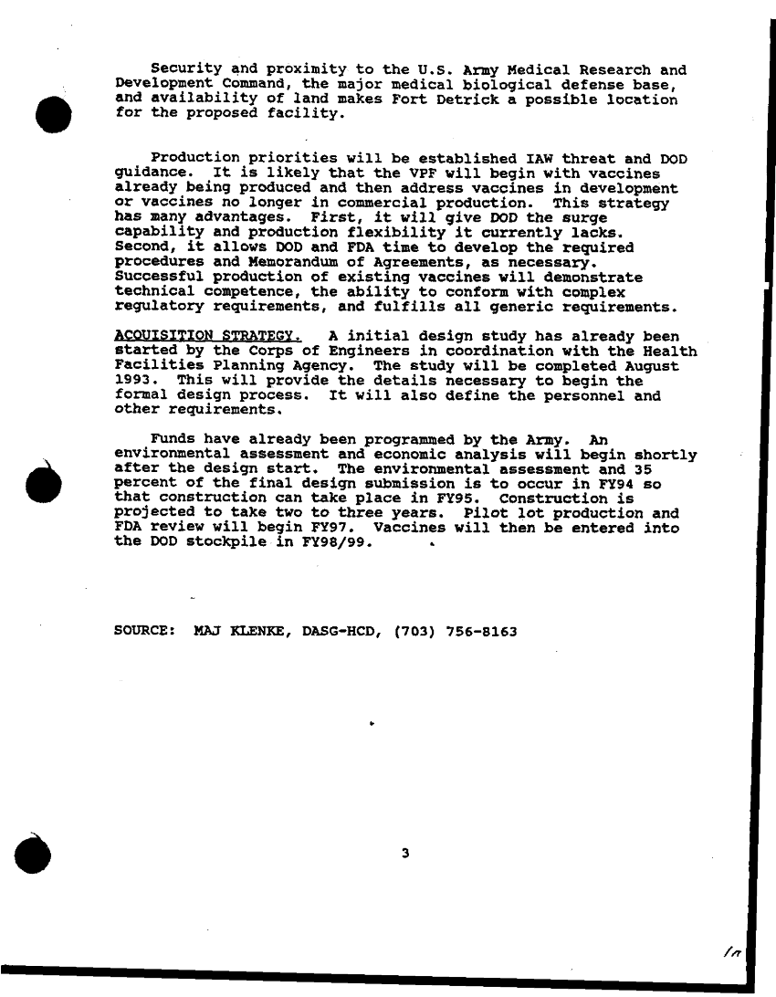 Folder Title = BIOLOGICAL DEFENSE VACCINE PRODUCTION FACILITY
