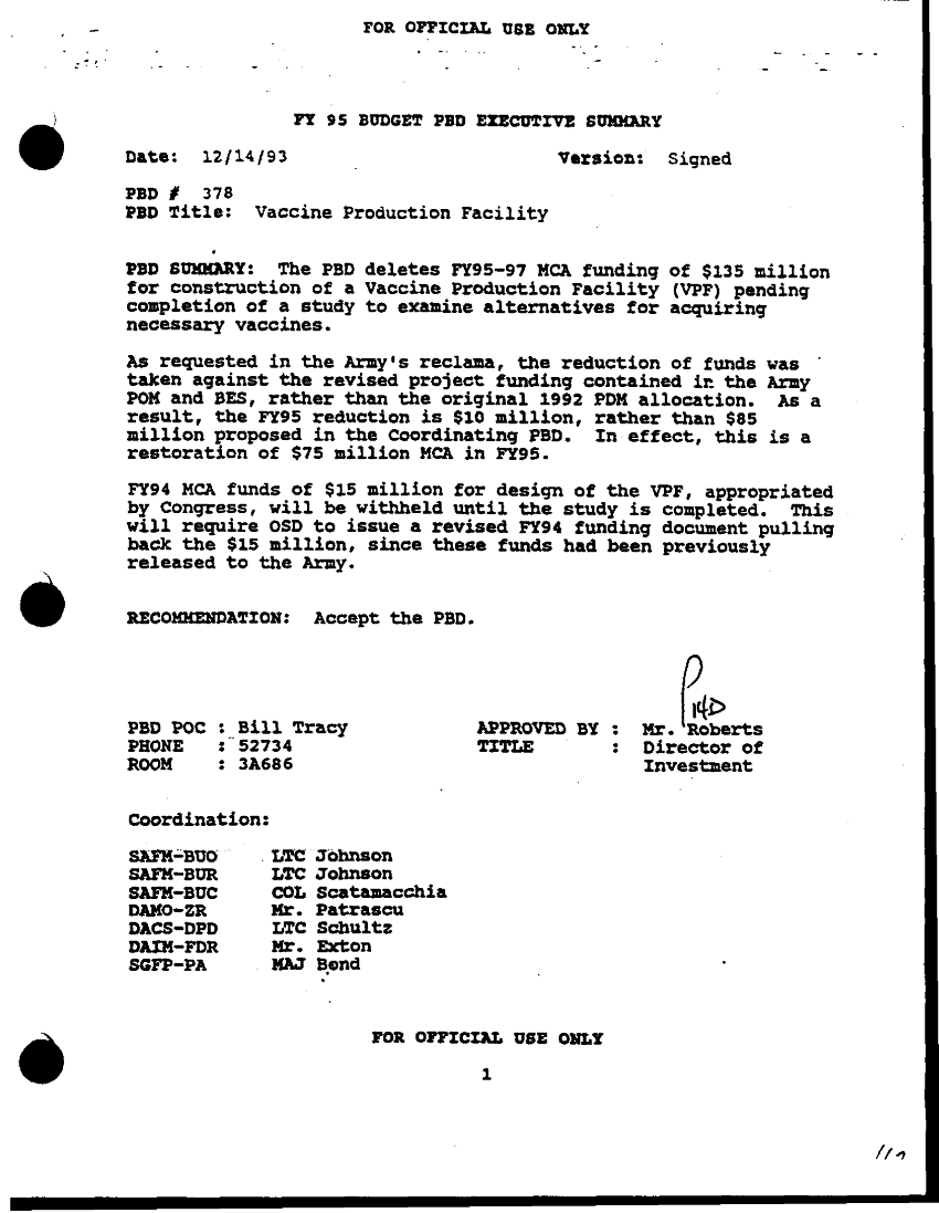 Folder Title = BIOLOGICAL DEFENSE VACCINE PRODUCTION FACILITY