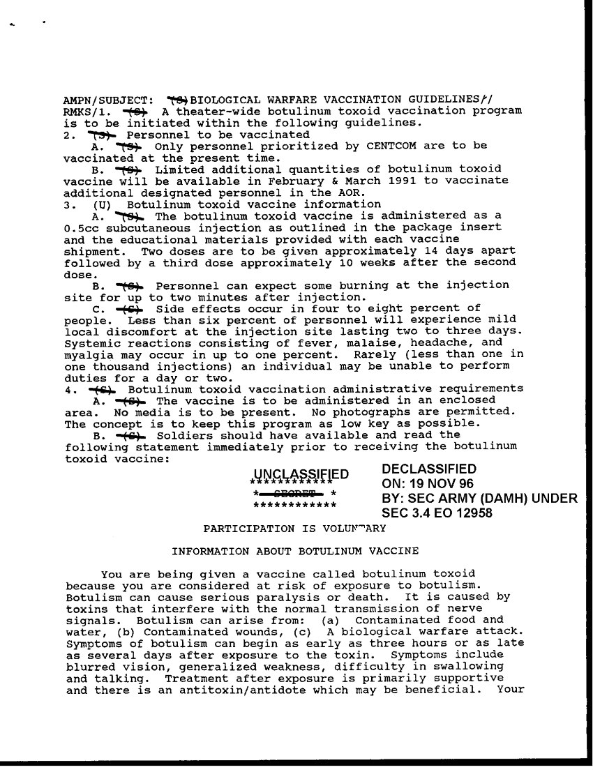 Subject = BIOLOGICAL WARFARE VACCINATION GUIDELINES