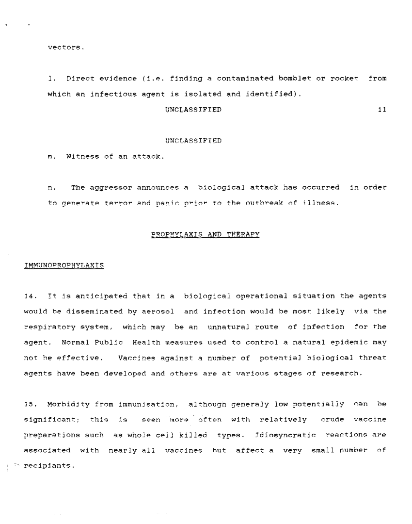 Subject = DETECTION OF MEDICAL DEFENSE AGAINST BIOLOGICAL