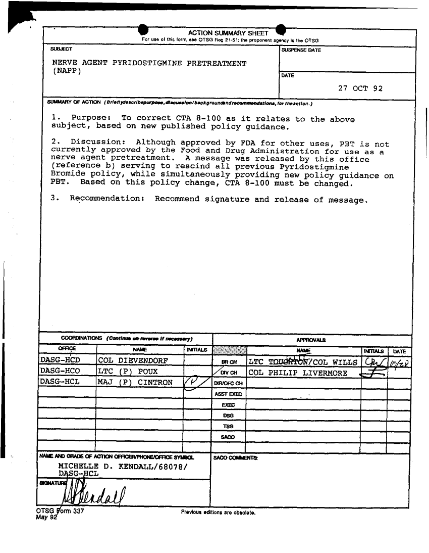 Subject = NERVE AGENT PYRIDOSTIGMINE PRETREATMENT