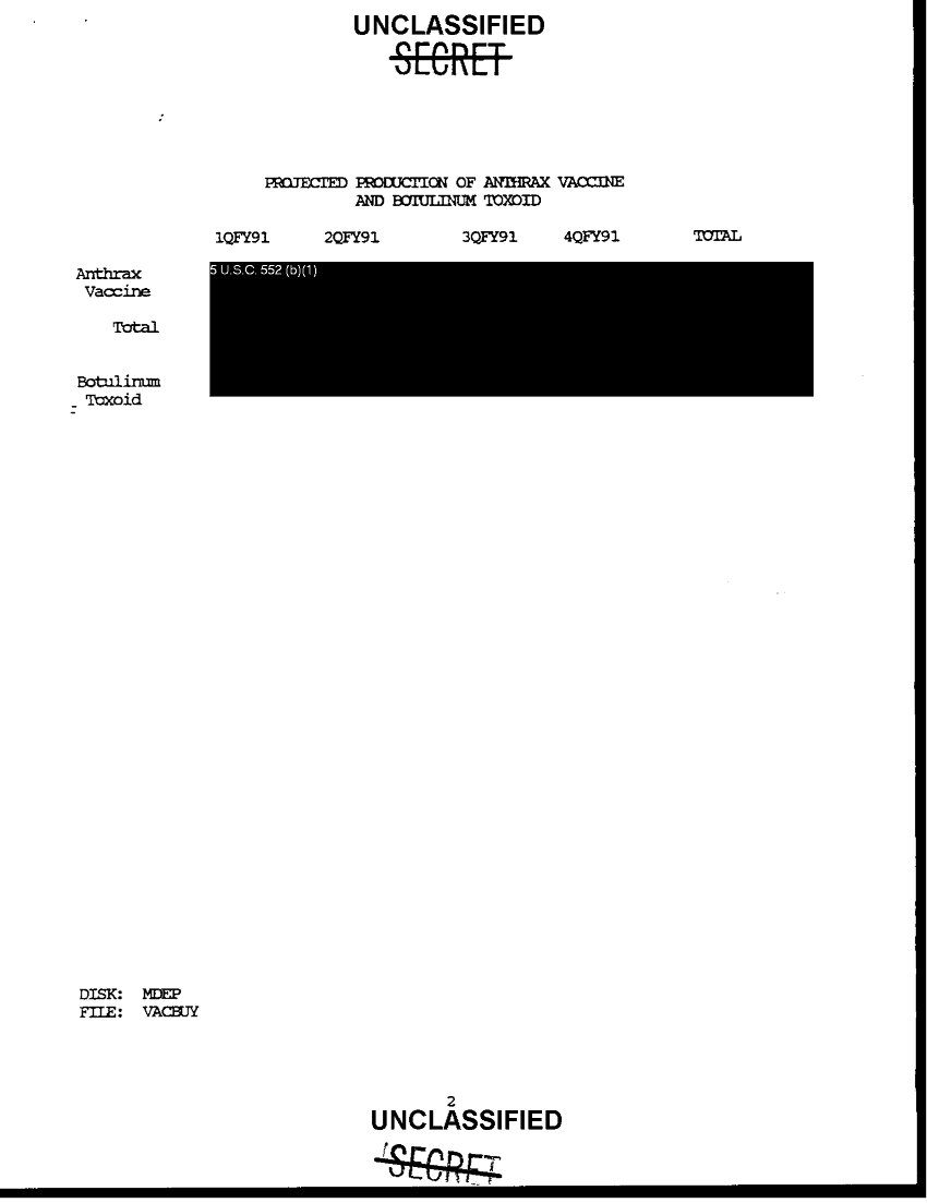 Subject = JUSTIFICATION CALCULATION FUNDING FOR ANTHRAX AN