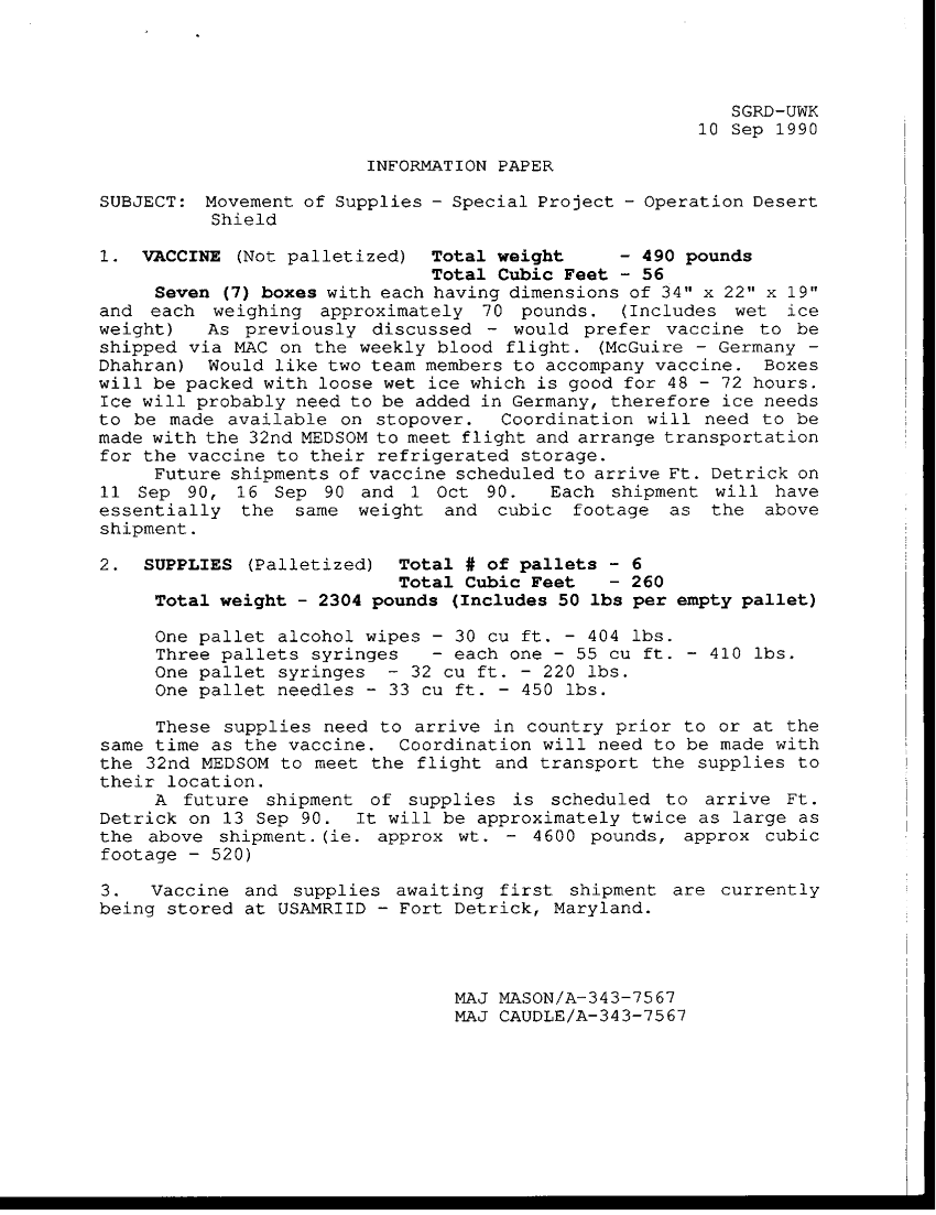 Document 1 f:/Week-36/BX003201/BIOLOGICAL DEFENSE/movement of supplies:12179609283338