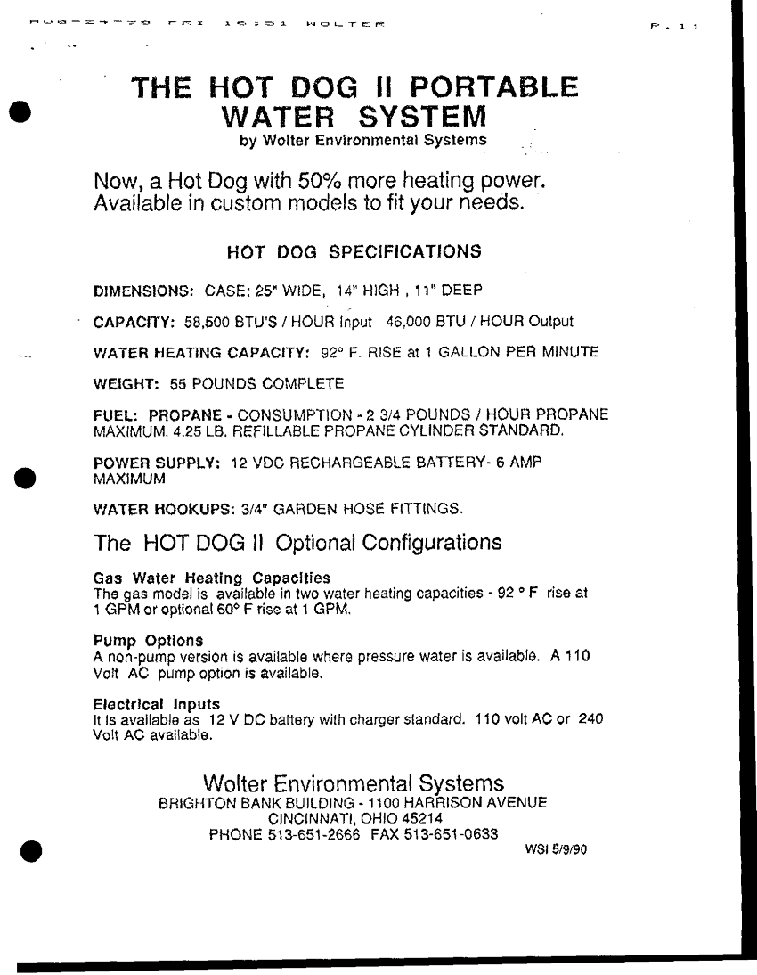 Subject = HOT DOG II PORTABLE WATER SYSTEM