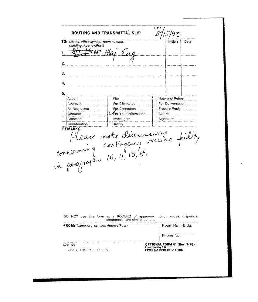 Subject = TOXICOLOGICAL RESEARCH VACCINE STORAGE AREA