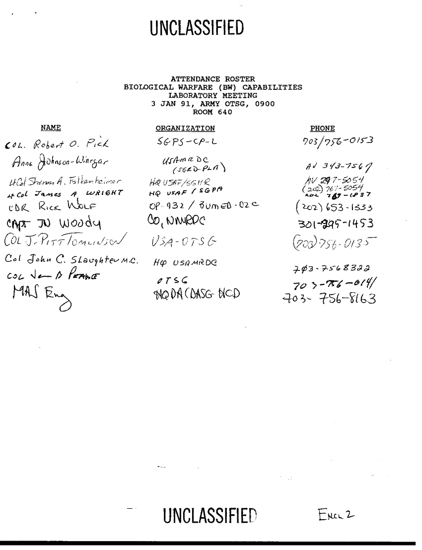 Document 11 f:/Week-36/BX003201/CONFIRMATION OF ATTACK WITH BIOLOGICAL WEAPONS/meeting on bio warfare lab capabilities for the :12179609285756