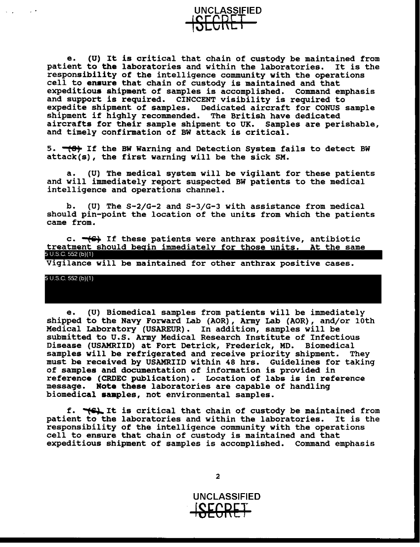 Subject = BIOLOGICAL WARFARE DEFENSE AGAINST ANTHRAX AND B