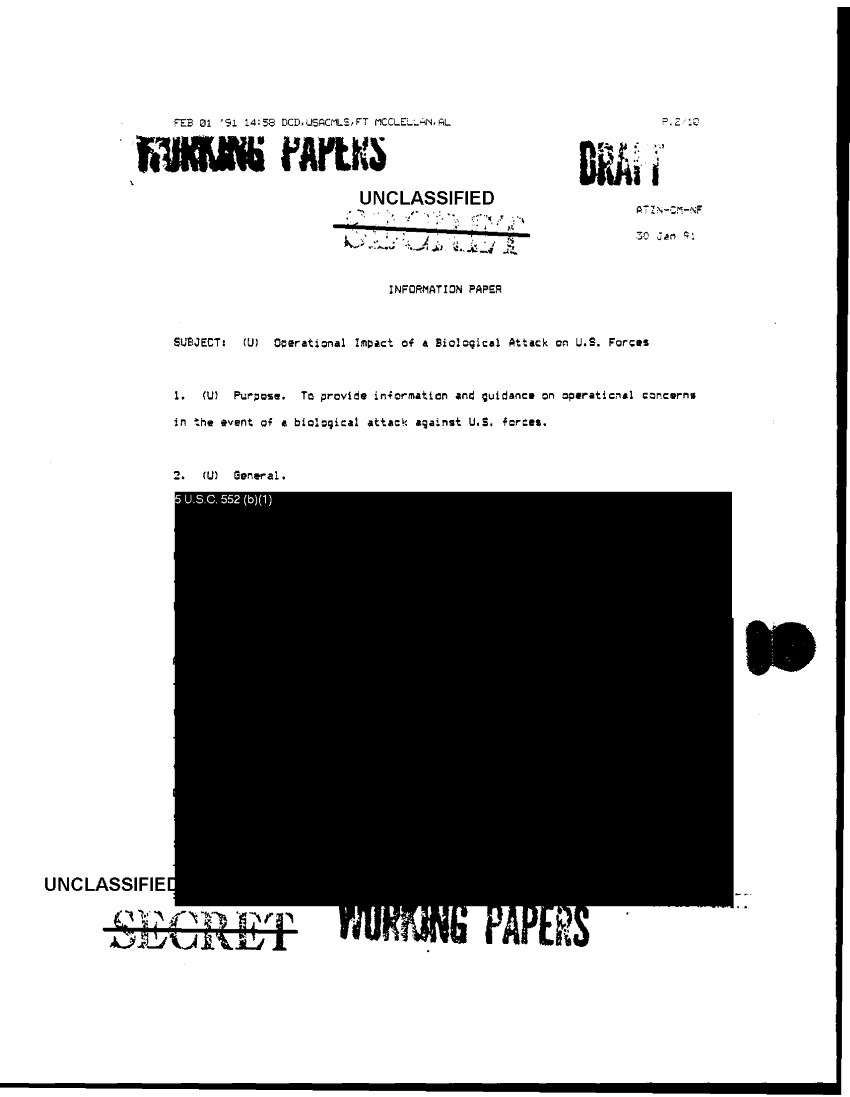 Document 194 f:/Week-36/BX003202/MEDICAL BIOLOGICAL WARFARE - BW- DEFENSE PLAN/medical bio warfare defense plan 8 apr 91:1224960931152