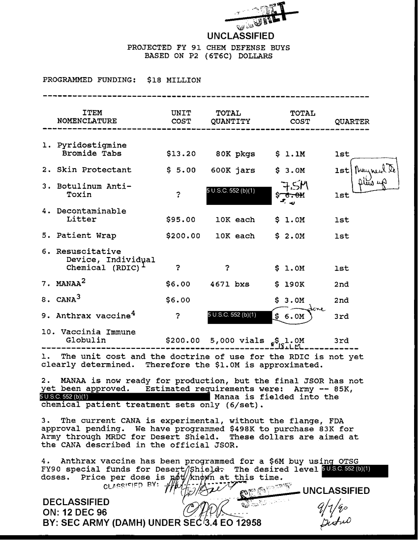 Folder Title = PROJECTED FY 91 CHEM DEFENSE BUYS