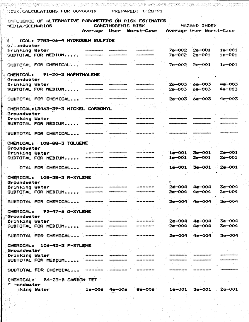 Document 10 f:/Week-36/BX003205/EXPOSURE CALCULATIONS/concentration chem environmental media covered i:01029715471618