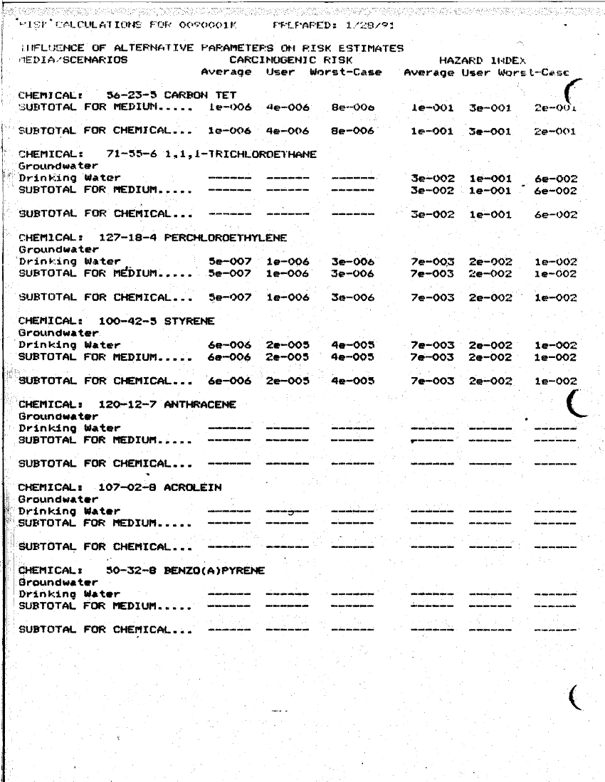 Document 10 f:/Week-36/BX003205/EXPOSURE CALCULATIONS/concentration chem environmental media covered i:01029715471618