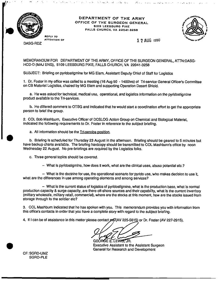 Subject = BRIEFING ON PYRIDOSTIGMINE 17 AUG 90
