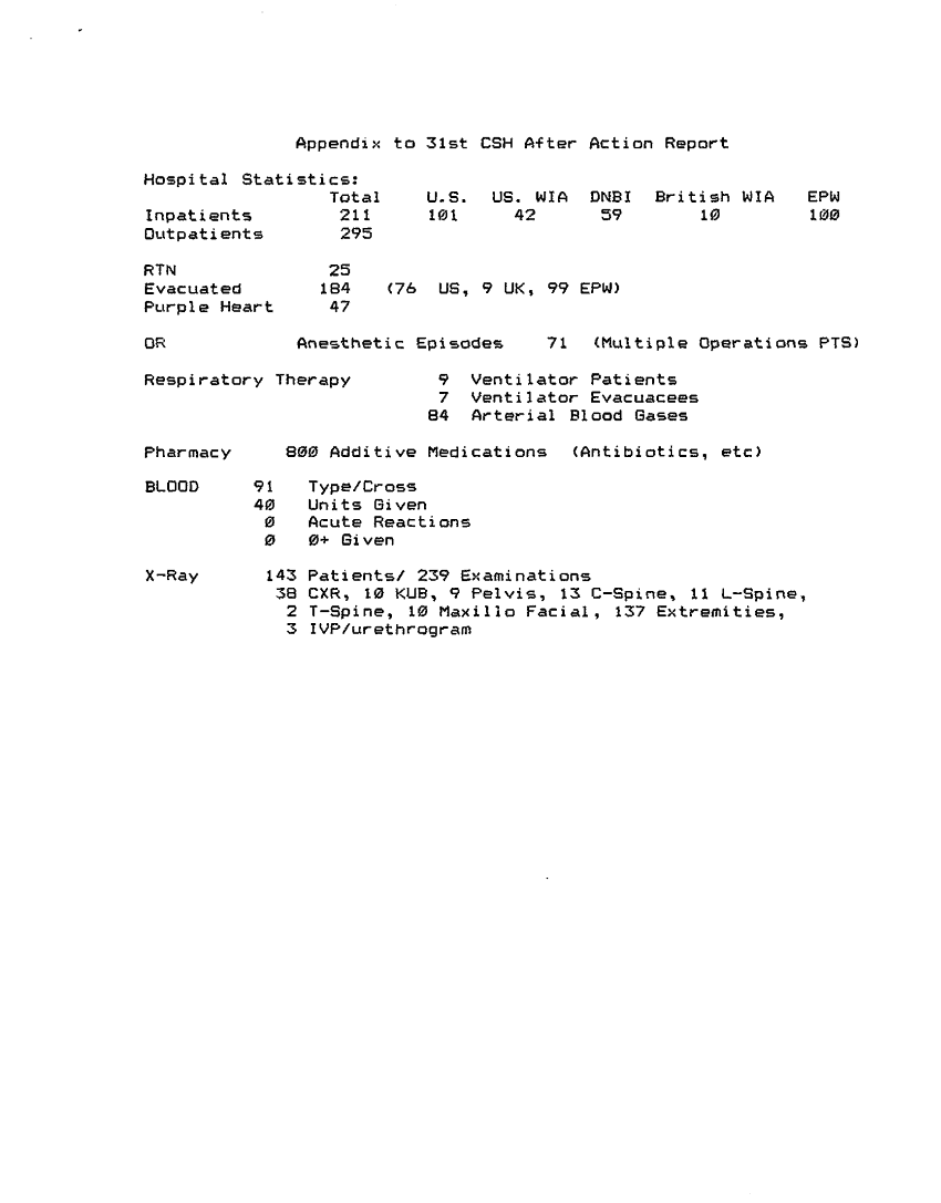 Subject = APPENDIX TO 31ST CSH AFTER ACTION REPORT