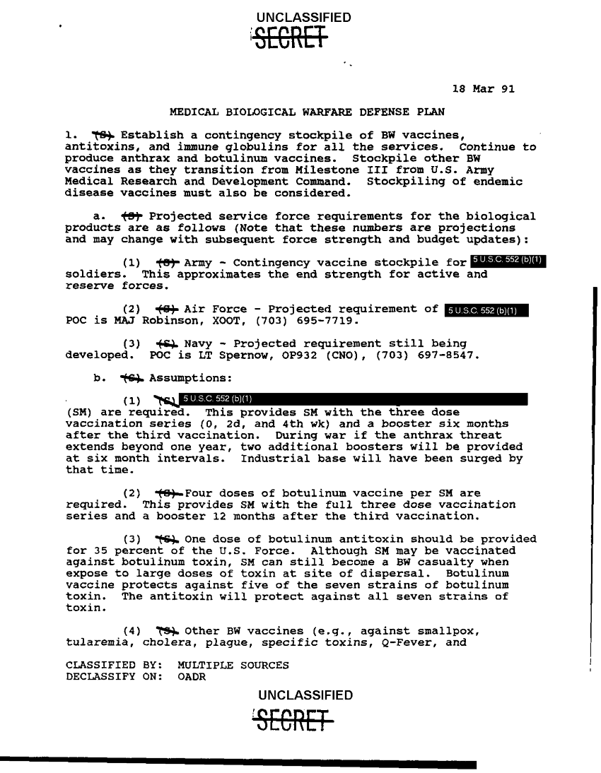 Document 10 f:/Week-36/BX003202/MEDICAL BIOLOGICAL WARFARE - BW- DEFENSE PLAN/medical bio warfare defense plan 18 mar 91:01029715474558