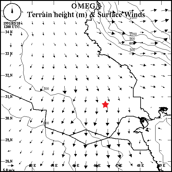 Figure A-63. 2000 OMEGA Grid 3 predicted wind fields for 1200 UTC March 10, 1991