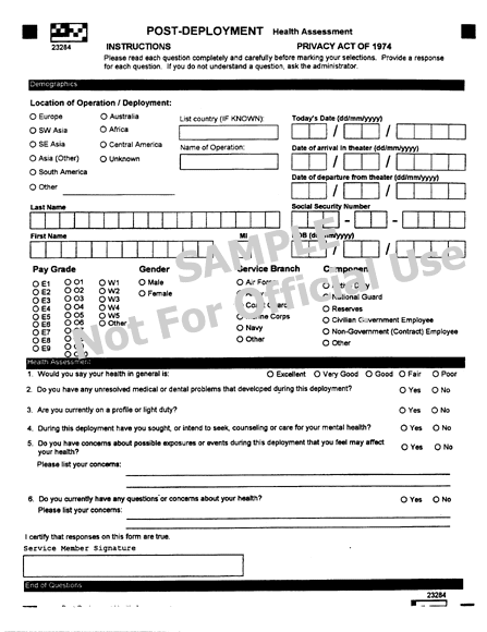 Current Post-Deployment Health Assessment Questionnaire, September 1998