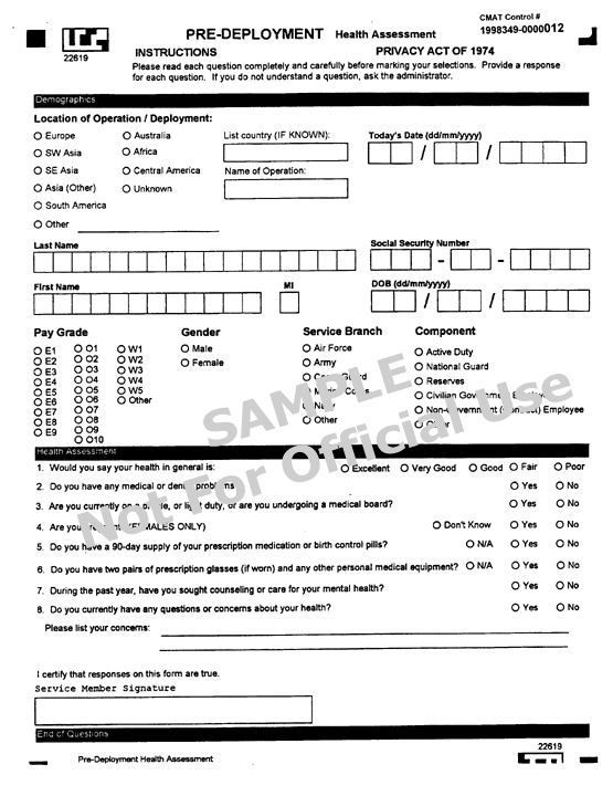 Current Pre-Deployment Health Assessment Questionnaire, September 1998