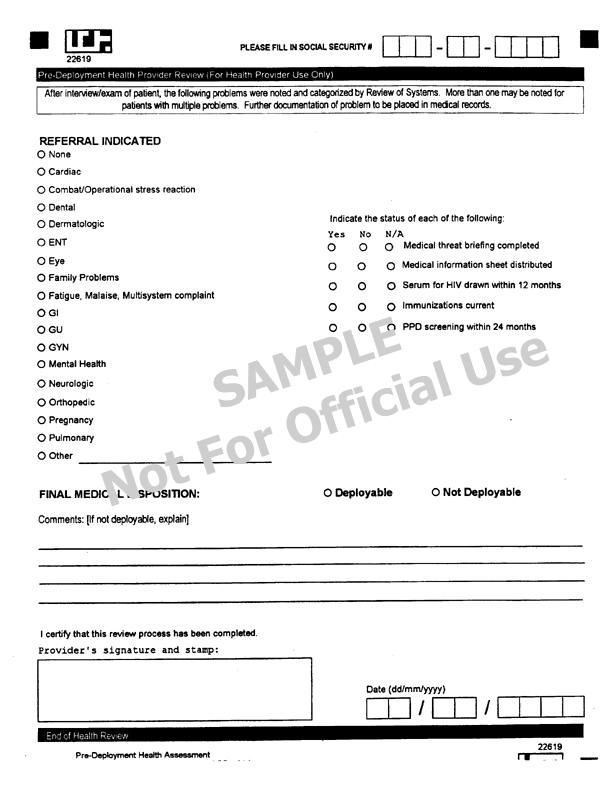 Current Pre-Deployment Health Assessment Questionnaire (back), September 1998