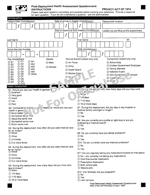 Initial Post-Deployment Health Assessment Questionnaire, April 1997