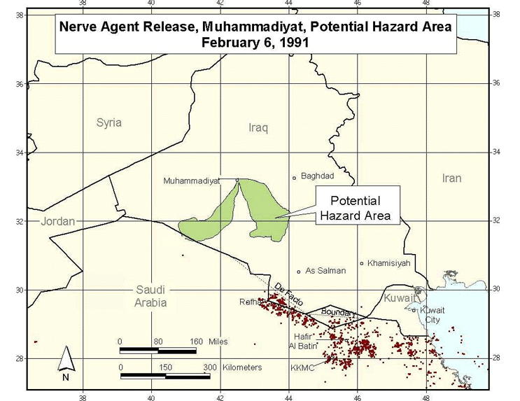 Figure 26. Nerve Agent Release, Muhammadiyat, Potential Hazard Area, February 6, 1991.