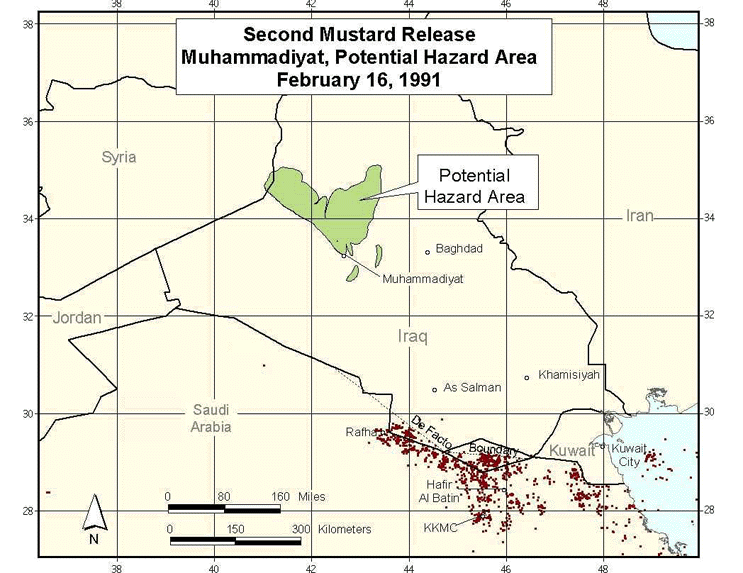 Figure 37. Second Mustard Agent Release, Muhammadiyat, Potential Hazard Area, February 16, 1991.