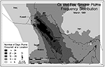 Smoke plume frequency distribution maps are shown in Figures 6 (a - d).[105] These maps show the number of days the plume occurred at a location over a specified period of time. For example, in Figure 6(a) the dark gray shading covers central and eastern Kuwait and indicates that for the eight day period of February 20 to 28, the plume was over these geographic areas for between five and eight days and over the western part of Kuwait, (light gray shading) for one to four days. In Figure 6(b), the black portion of the plume boundary is over the northeast corner, south, and southeast corner of Kuwait, and extends southeastward over the Persian Gulf. This indicates that for the March 1991 time period the smoke plume was over these geographic areas for a period greater than 24 days.The figure also indicates for the March 1991 time period the plume was over central Kuwait for 5-8 days and over western Kuwait for 1-4 days. The concentrations of the various contaminants of concern in these plumes and the troop units exposed will be discussed in Section VI.