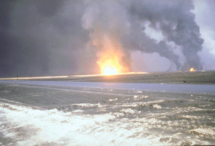 Figure 7. Blown well head showing flickering fire ball (photo by Jack Heller, USACHPPM, May 1991)