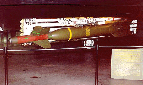 The Guided Bomb Unit-27 (GBU-27) is a GBU-24 modified for delivery by the F-117 stealth fighter. The operator illuminates a target with a laser designator and then the munition guides to a spot of laser energy reflected from the target. It uses a 2,000-pound penetrating warhead against hard targets. The GBU-27 was used in Operation Desert Storm. According to the Air Force, the GBU-27 hit 70 percent of its targets.