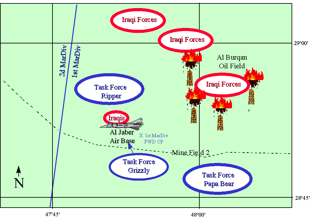 Figure 4. Unit deployment around Al Jaber, Night of Feb 24/25, 1991.
