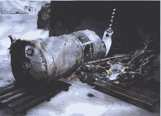 Figure 7. The Recovered SCUD's Guidance Section & Rocket Motor (rocket motor is in the foreground)