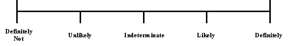 By following our methodology and accumulating anecdotal, documentary, and physical evidence, and by interviewing eyewitnesses and key personnel, and analyzing the results, the investigator can assess the validity of the presence of chemical warfare agents on the battlefield. Because information from various sources may be contradictory, we have developed an assessment scale (Figure 1) ranging from "Definitely" to "Definitely Not" with intermediate assessments of "Likely," "Unlikely," and "Indeterminate." This assessment is tentative, based on facts available as of the date of the report publication; each case is reassessed over time based on new information and feedback.