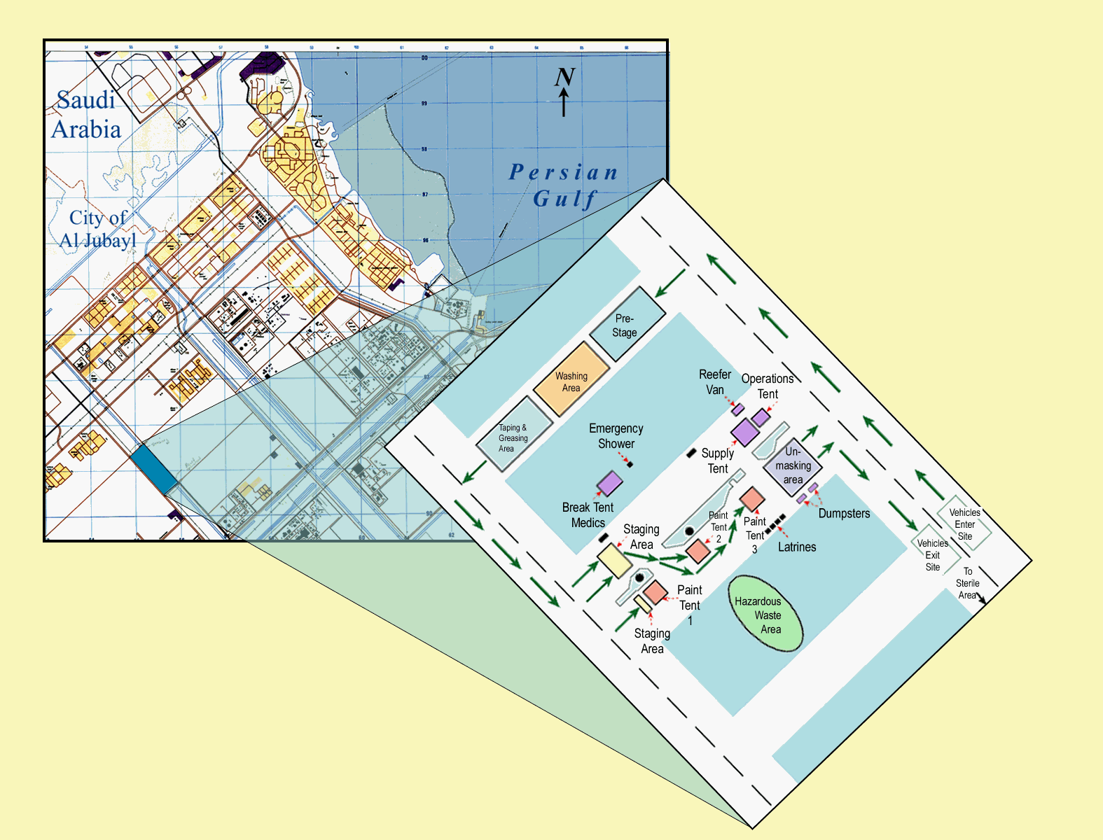 Figure 7. Location and major features of the VII Corps redeployment paint site at Al Jubayl