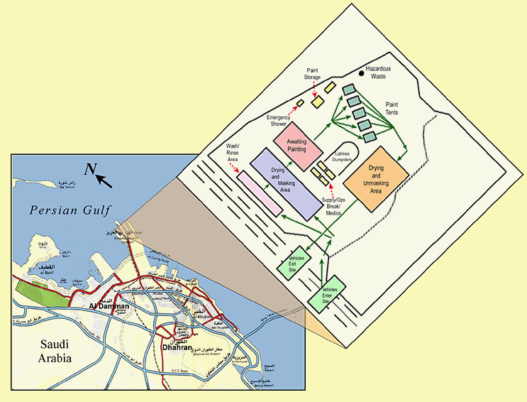 Figure 10. Location and major features of the VII Corps Ad Dammam redeployment site