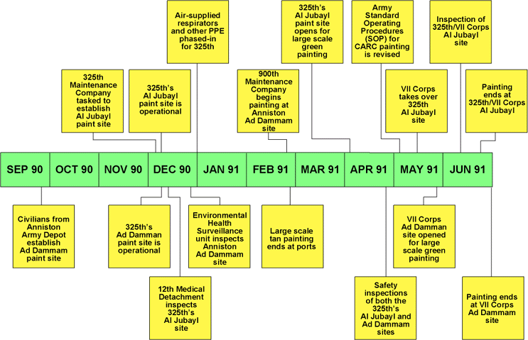 Figure 2. Timeline of major events associated with in-theater painting
