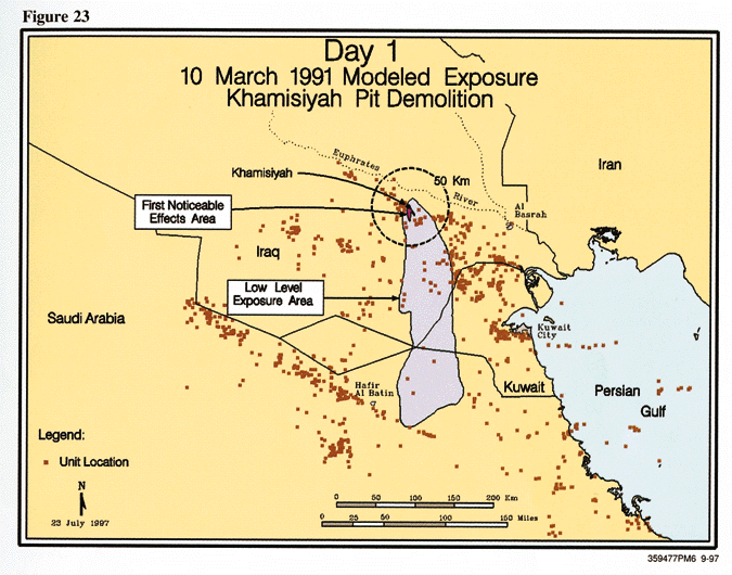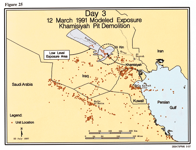 In May 1996, Iraq told UNSCOM inspectors that US troops had destroyed chemical weapons in the pit near the Khamisiyah depot. After receiving details from UNSCOM in June, DoD was able to interview soldiers who confirmed the demolition of 122-mm rockets in the pit. We discussed this at the PAC meeting in Chicago in July 1996.
