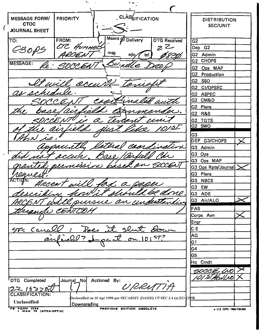 Subject = DAILY STAFF JOURNAL OR DUTY OFFICERS LOG 22 OCT 90