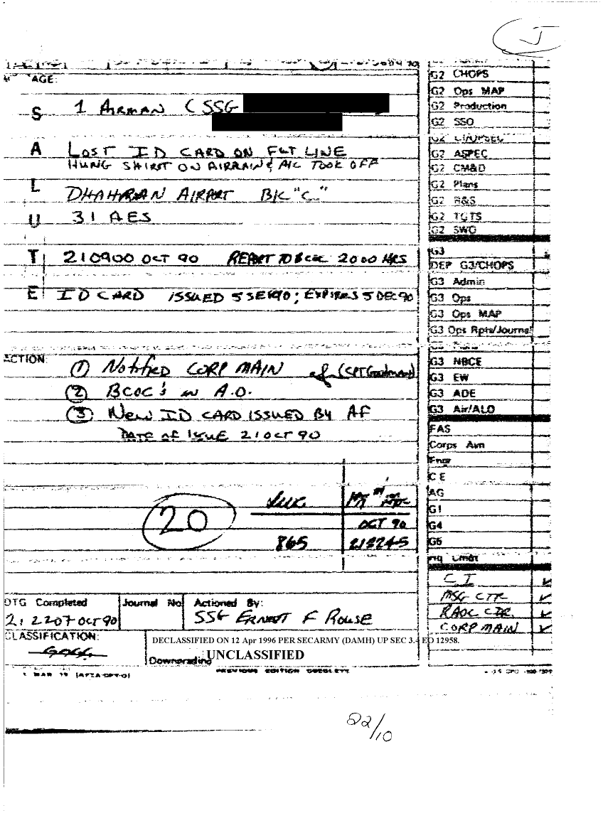 Subject = DAILY STAFF JOURNAL OR DUTY OFFICERS LOG 22 OCT 90