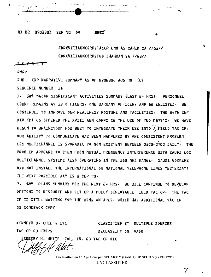 Document 47 f:/Week-14/BX000007/DUTY LOG G3 TAC CP 7 SEP 90/daily staff journal or duty officers log 7 sep t:04179616012077