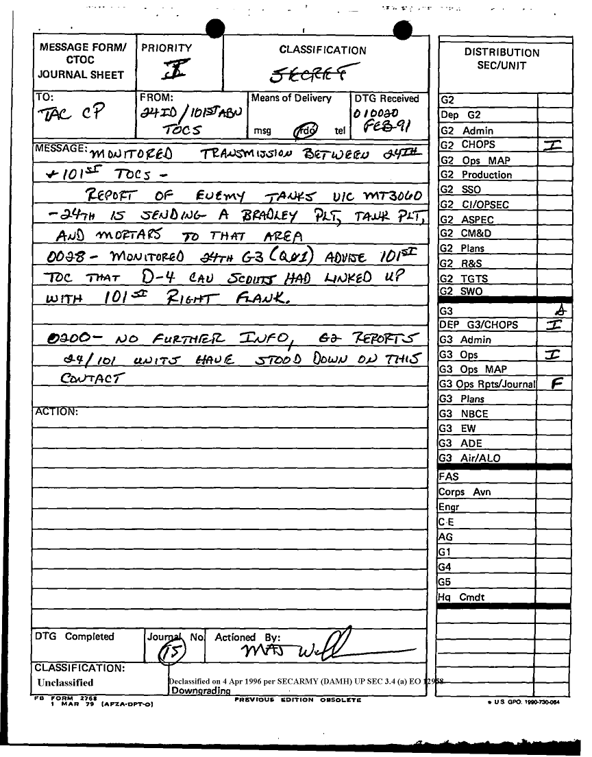 Document 17 f:/Week-12/BX000024/DUTY LOG G3 TAC CP 31 JAN 91/daily staff journal or duty officers log:041796160120115